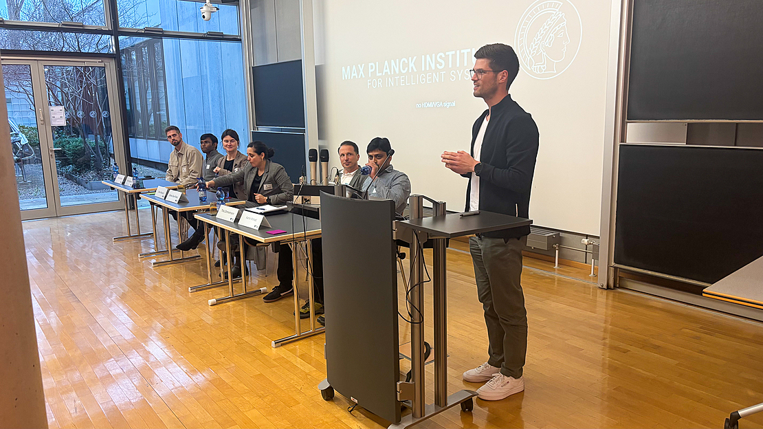 On March 17, the Cyber Valley Impulse series began, focusing on AI in Mobility and Aerospace. Researchers, start-ups, corporates, and investors met at the Max Planck Institute for Intelligent Systems in Stuttgart to discuss vision-based perception for aerial robots, AI in aerospace systems, automated driving, and new funding opportunities in mobility technologies. Speakers included: Aamir Ahmad (University of Stuttgart), Thilo Zimmermann (Innovation Campus Future Mobility), Zamira Daw Perez (Institute of Aircraft Systems), Ulrike Weinrich (FKFS Research Institute for Automotive Engineering and Powertrain Systems), Anand Waghmare (Yugen Space), and Frederik Boenke (NUVUS).